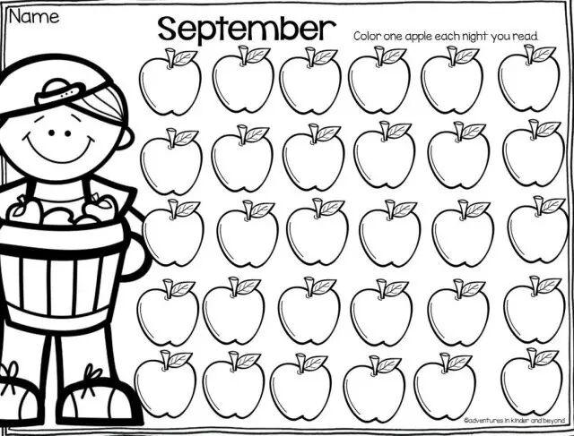这个Reading log是按照月来的变化有不同的图形,八月是铅笔,九月是苹果,十月是玉米糖,十一月是南瓜。