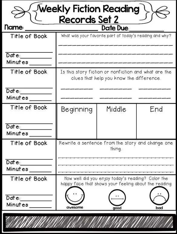 小说类的阅读记录单需要写清楚故事的开头、高潮和结尾。读完以后还可以给读完后的心情评价。