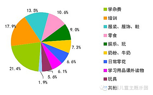 研究考虑了孩子最重要的9类消费,考虑了消费的群体比例和花费金额分布,经过计算梳理出了儿童消费结构。从这个消费结构中,能反应出很多有意义的发现。例如从占比最大的学费能看到现在孩子的学习压力和精神压力,以及家长的投入压力;娱乐花费太少则很大程度上反映了孩子在课外拓展活动上的缺失,这对孩子的情商培养、团队能力的发展都是相当不利的。