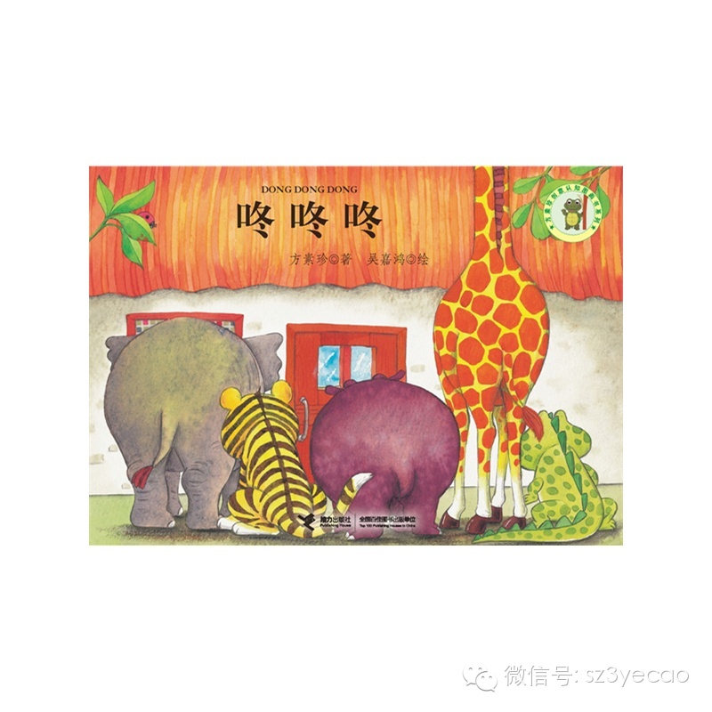 《咚咚咚》是大型动物老虎、大象、鳄鱼、河马、长颈鹿来敲门,但是因为体型太大、太高所以都无去进门,最后敲门的是谁呢?我故意加个谜语儿歌,读到这儿,可以念念儿歌,猜猜是哪种动物,本书重点是让孩子分辨大小比例。