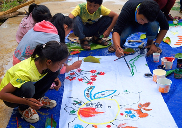 图03 乡村孩子用自己的双手和纯真的心灵描绘他们心中的花神树神