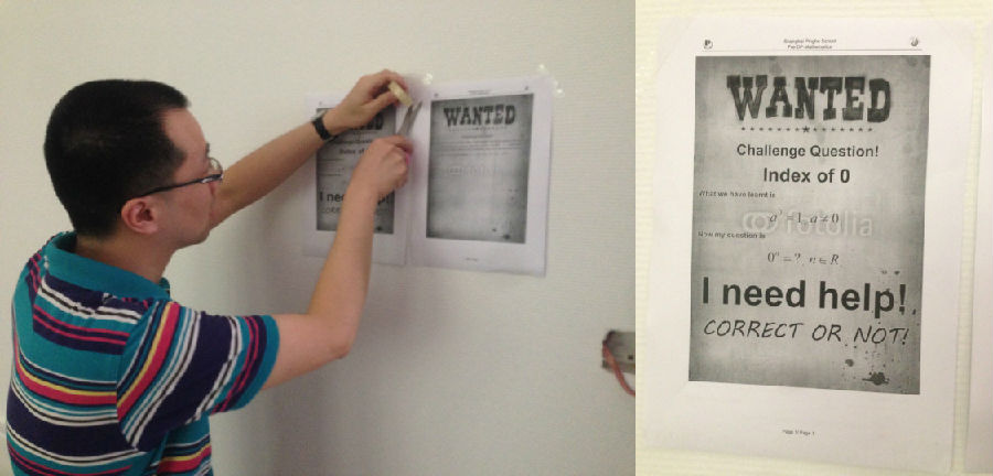 在他的IB数学课上,我们可以发现很多“奇奇怪怪”的现象:学生们的桌椅是“四处散乱”的,上课练习几个人一张卷子,不讲例题、下课不布置作业,墙壁上还贴着“Wanted”的通缉榜。