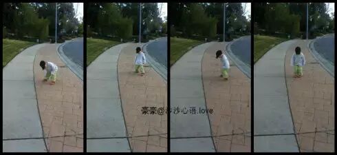 比如下面这条人行道,有着很大很长的格子路。我让儿子走格子,可以用蹦、跳、走、跑等各种方法走完这条路,但不能踩到线。每次儿子都玩得不亦乐乎,想尽办法完成目标。这个游戏一来可以开动孩子的脑筋,二来可以训练孩子的耐力,三来可以锻炼身体的灵活性——格子的每一块大小也是不一样的。