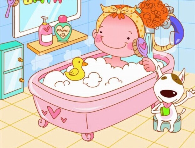 如果是淋浴,妈妈给宝宝唱一首洗澡歌,让宝宝跟着歌词做相应动作,擦香皂、搓泡泡,自理能力也不断提高。