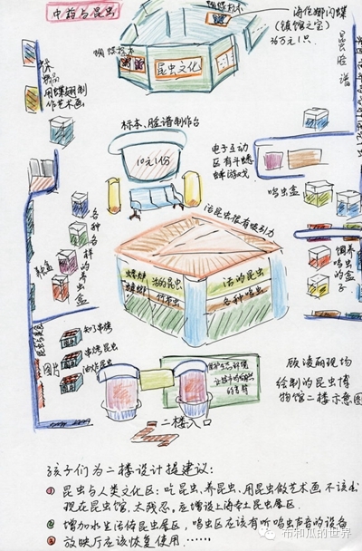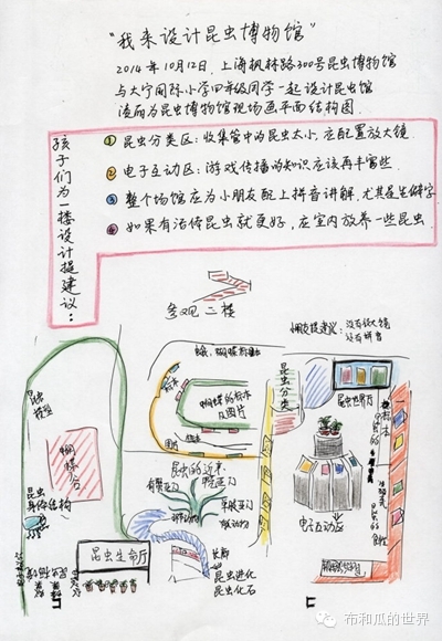 孩子们还充分发挥了想象力,自己来做未来设计师,用自己的画笔画出昆虫馆的设计图。