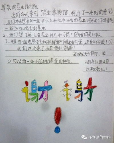 基于这些设计构想与建议,孩子们还认真给昆虫博物馆的殷馆长写了信。