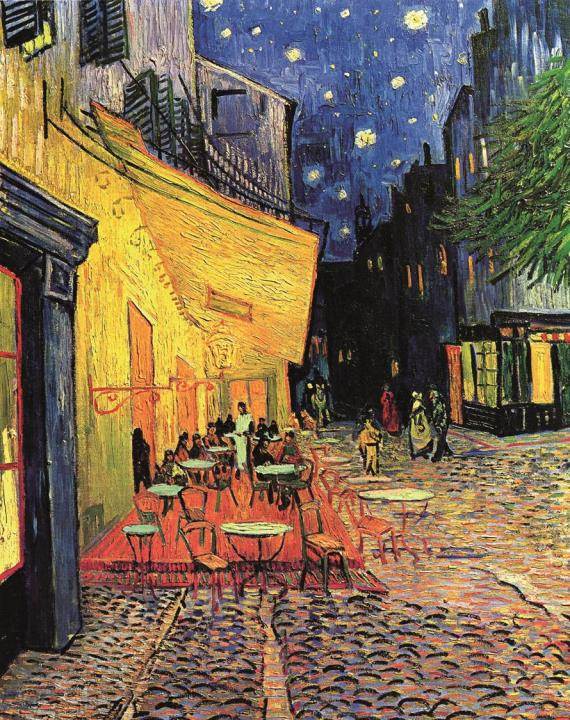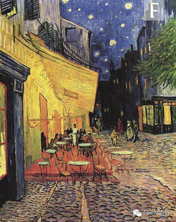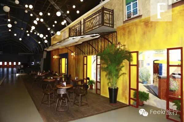 ▲最值得一说的就是根据梵高的《夜间露天咖啡馆》还原的咖啡馆,斑驳的黄墙、绿窗棂,窗内温暖的灯光、窗外花园的风景……流光溢彩的世界,又有多少人能走进当时梵高的心中?