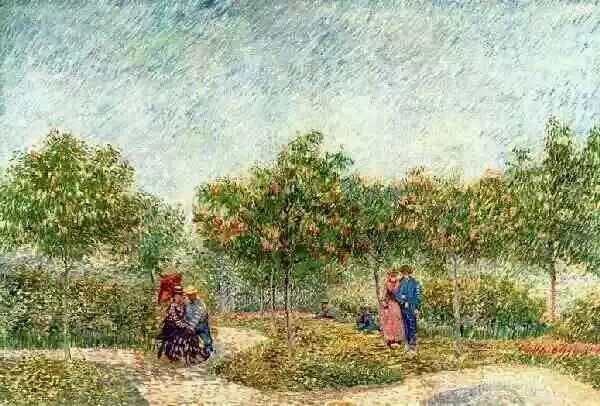 1886年-1888年,从荷兰转到法国,梵高的画受到了巴黎的活力以及印象派画家们的启发,画中的场景转变成明亮的花朵、花园、水果盘以及色彩特征明显的花园,形成了自己鲜明的绘画风格,这是他人生中最意气风发的日子。