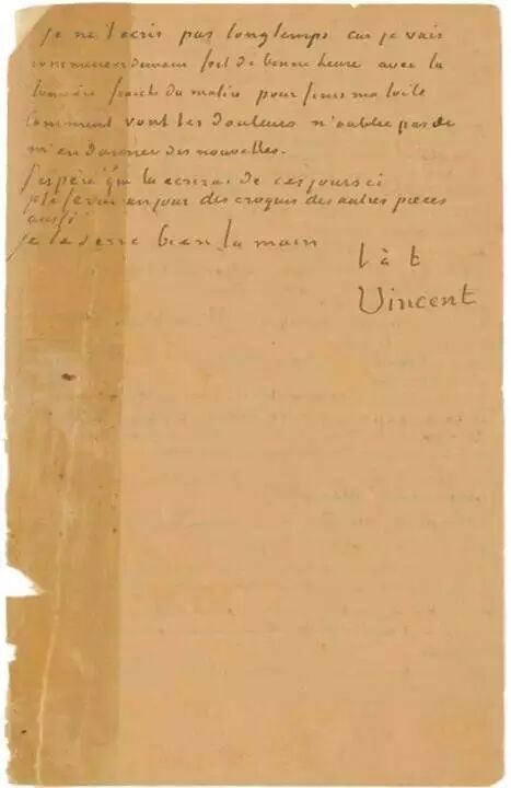 文森特与弟弟提奥关系很好,他们之间有大量的书信往来,有时每天一封。这些信札被提奥的遗孀整理出版,成为一部梵高的书信体自传,为后世的研究者提供了最直接的第一手资料。