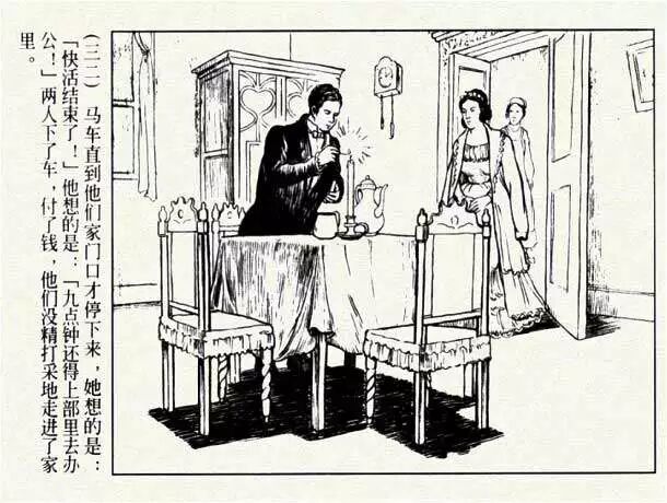 说完他就走了。她呢,连上床去睡的气力都没有了,就这么穿着赴晚会的新装倒在一张椅子上,既不生火也不想什么。