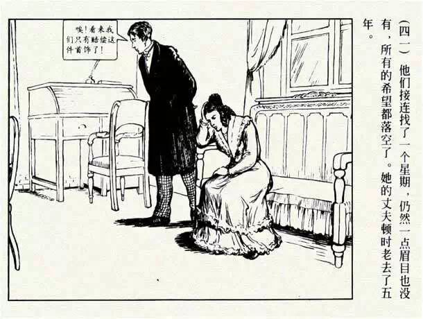 生:“唉!我可怜的玛蒂尔德!可是我那一挂是假的,至多值五百法郎!……”