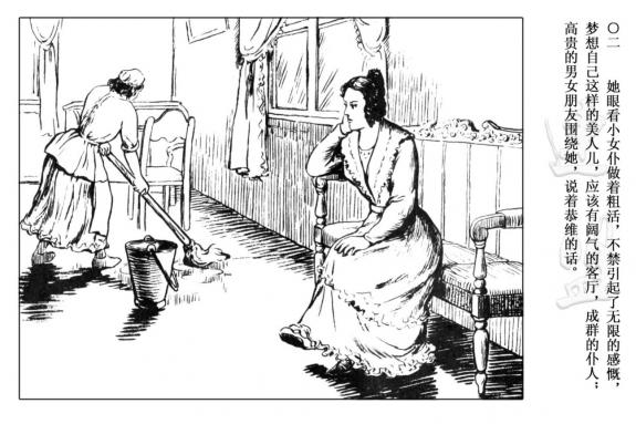 她没钱打扮,因此很朴素;但是心里非常痛苦,犹如贵族下嫁的情形;这是因为女子原就没有什么一定的阶层或种族,她们的美丽、她们的娇艳、她们的丰韵就可以作为她们的出身和门第。她们中间所以有等级之分,仅仅是靠了她们天生的聪明、审美的本能和脑筋的灵活,这些东西就可以使百姓家的姑娘和最高贵的命妇并驾齐驱。