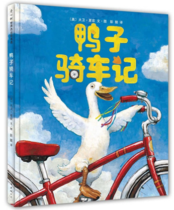 啊?鸭子能骑车吗?可他没想那么多,这可是只热情的鸭子,他是绝对不会错过任何新鲜玩意儿的。瞧!他爬上车,一使劲儿,嘿!左摇摇,右晃晃,还真骑了起来!