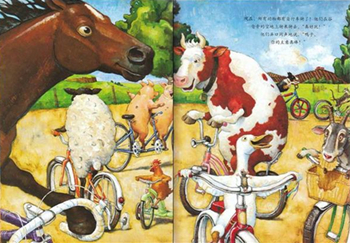 时间就这样过去了,动物们骑完,把脚踏车放回屋旁。母牛还是吃着青草,猫还是晒着太阳,狗还是找着他的骨头。没有人知道,那个下午,有那么多的动物都热烈地骑过脚踏车。