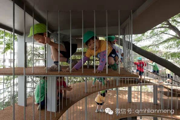 椭圆形的“无终端”建筑,让每个孩子得到同样地重视,感受到平等。传统的长条形校舍里较远的孩子容易受到忽略,且不利于孩子关心他人,而这种连续、开放、无终端的教室设置不仅会让每个教室的每个学生感觉到自己受到同等的重视,还能增强各个班级之间人际关系的发展。