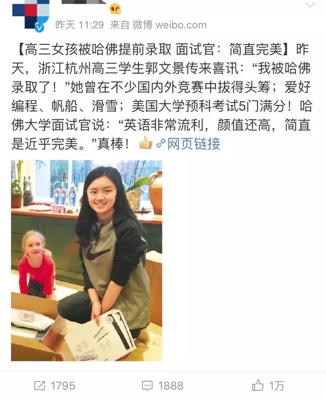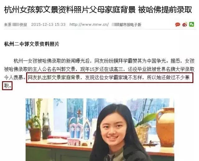 昨天被郭姓女生考上哈佛的新闻刷屏了