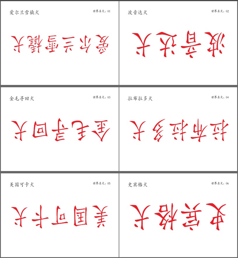 【内容】正面精选世界名犬高清图片;背面索引名称、编码、倒立设计犬名称(方便翻转闪法教学)